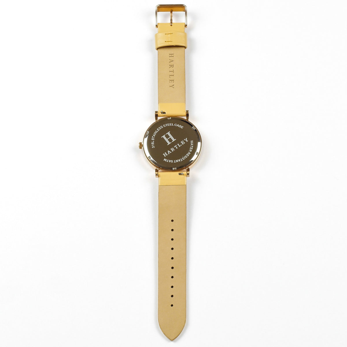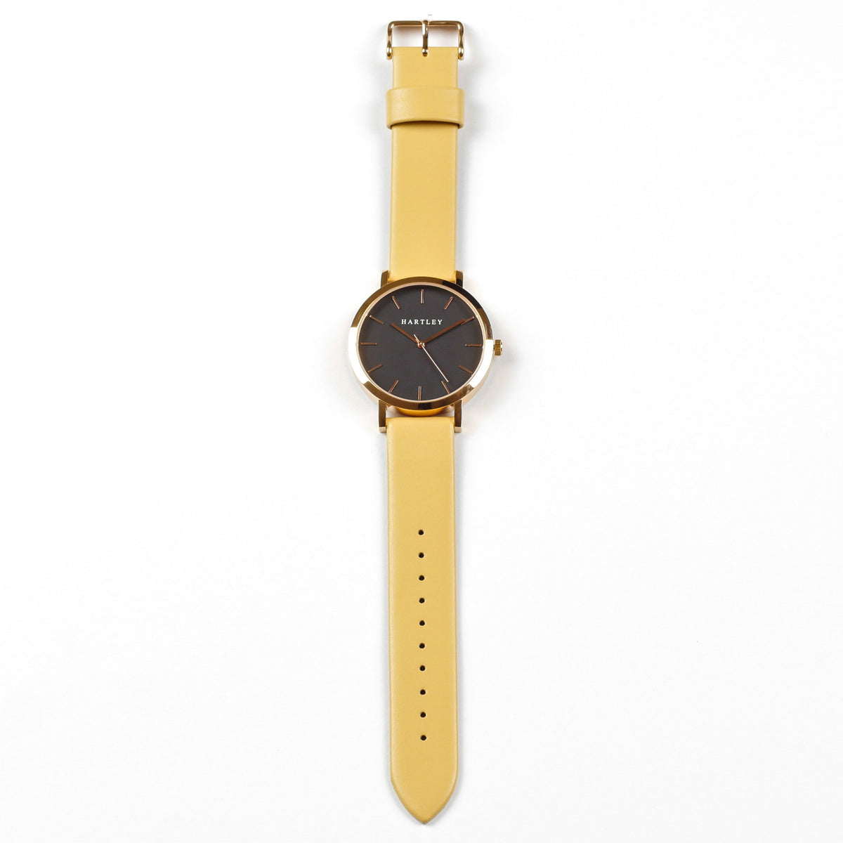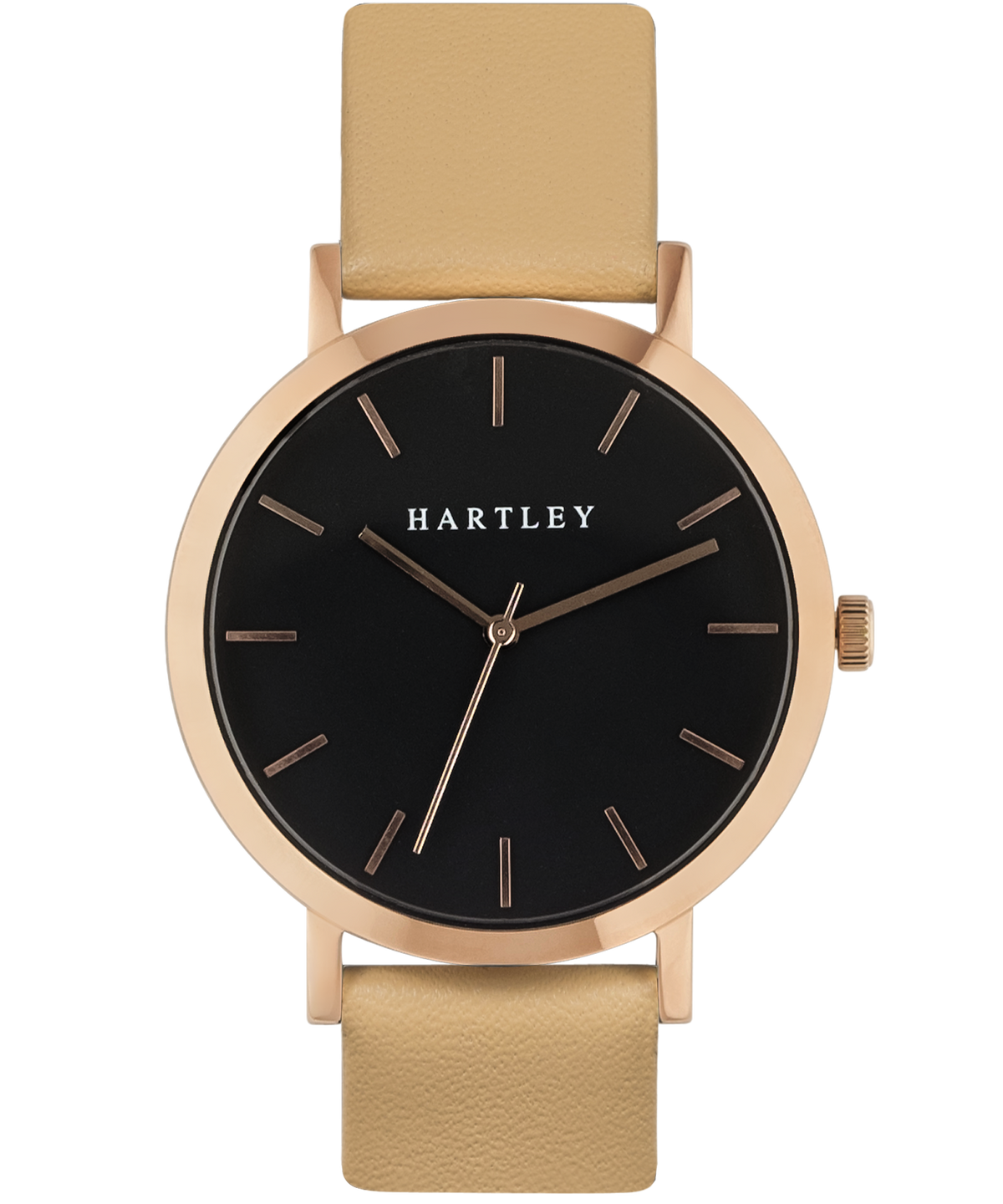 A simple yet sophisticated timepiece featuring a polished rose gold dial on a deep black face with gorgeous peach bands. Casual or formal, this timepiece suits every occasion.